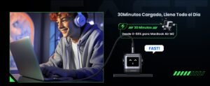 • 65W Salida Máx: Carga rápida para portátiles y móviles; 65W por puerto individual y 45W + 20W al usar dos puertos simultáneamente.