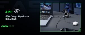 Cargador RobotGaN de 65W Serie UNO, 3 Puertos de Carga Rápida, 2 USB-C, 1 USB-A