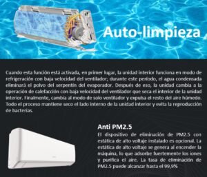 - Super silencioso con un ruido tan bajo como 23 dB, luz indicadora inteligente, auto diagnóstico para facilitar servicio de manteniento, auto reinicio, entre otras más funciones que hacen del equipo potente y profesional.